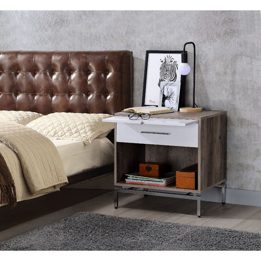 ACMECistus - Accent Table - Weathered Gray Oak & White - 24"Product Features Rectangular Table Storage: Pull Tray, 1 Drawer & Open Compartment ...