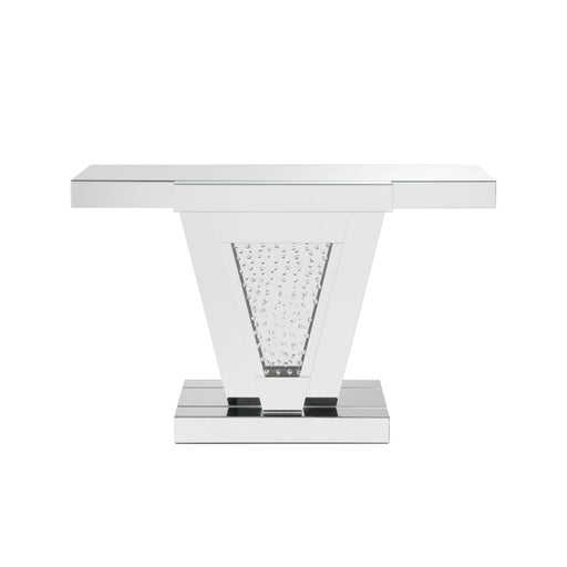 ACMEKD, Rectangular Console Table Beveled Mirrored Finish, Clear Glass with Faux Crystal Inlay (Back Unfinished) Orientation: Free Standing NO Storage ...