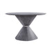 The Ansonia dining set features a pedestal dining table with a fixed round top and a trendy faux concrete finish. The matching side chairs are perched on sled metal bases with shiny chrome finish that contrasts beautifully with the gray PU upholstery on the padded seat and backs. In addition, decorative quilt-like stitching on the chair upholstery creates visual texture that looks as good as it feels.