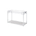 KD, Rectangular Console Table Storage: Open Compartment (1 Wooden Shelf, Fixed) Mirrored Top Metal Frame with Square-Straight Leg (Open Frame) CONSTRUCTION] MIRRORED TOP: 5mm Thick Wooden Shelf: Paper Veneer, PB Metal Frame & Square Leg: Chrome finish (Plastic Cap Protectors)
