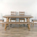 Experience unparalleled craftsmanship with our dining set meticulously crafted from mahogany solids. The industrial-inspired design features four solid wood post legs and a robust metal turnbuckle tension rod, creating a durable and visually striking foundation. The rectangular tabletop, adorned with this unique blend of materials, arrives with two removable 15-inch leaves, offering flexibility in size. With the leaves in place, the table extends to a generous 106 inches, comfortably accommodating six to eight people.