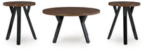 | Details | Includes coffee table and 2 end tables, Made with tubular steel frame, decorative laminate and MDF substrate, Tabletop with replicated reclaimed walnut pattern, Durable matte black powder coat finish, Canted legs | |
