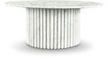 Add a refined look to your room with this handcrafted Genoa coffee table, a stunning masterpiece that marries elegance and practicality. Crafted from genuine travertine, each table is a unique work of art, featuring a travertine top with intricate white veining. The fluted travertine base adds a touch of art deco design, making it a statement piece in any room and adding to its heirloom-quality design.