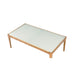 KD, Rectangular Leg Coffee Table • NO Storage (Open Base) •• CONSTRUCTION •• Glass Top: 5mm Frosted Tempered Glass • Wood Apron & Tapered Leg: Natural Finish, Solid Wood