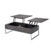 Maximize your living space with the attractive Iban Coffee Table. Designed for with both function and style, this rectangular occasional table features a rich gray oak finish and a sturdy, metal sled base. The minimalist style and neutral color scheme create a contemporary look that will mesh with any existing Decor. The coffee table's two lift-tops raise for those times you prefer a higher surface, whether enjoying a meal or working on a laptop in the comfort of your family room. When lifted, the table provides ample hidden storage to keep items tucked out of the way when not in use. Make the most of your space with this attractive coffee table that brings a modern touch to any room.