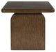 | Details | Includes coffee table and end table, Made with hardwood veneer and MDF substrate, Medium brown finish with embossed wood grain texture, Assembly required | |