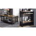 Foldable, Rectangular Coffee Table • Storage: 1 Compartment (4 Metal Sliding Door) • Includes: Foldable Function with No Tool required, Wooden Top, Metal Mesh Base •• CONSTRUCTION •• Wooden Top: Antique Oak finish, Paper Veneer, MDF • Metal Mesh Base w/Straight Metal Leg: Black Finish, Iron Metal Tube •••