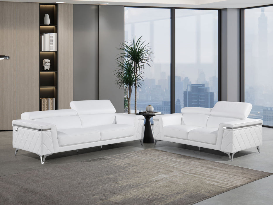 1140 - Top Grain Italian Leather Sofa And Loveseat - White