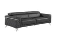 Exuding stylish form and comfort, this sofa is a wide width for comfortable seating and is inspired by Italian design. The gorgeous, stainless steel chrome legs and trim add a beautiful contrast to the top grain Italian leather upholstery. Additional support is provided with adjustable headrests for neck comfort that uses a state-of-the-art Japanese ratchet system with multiple adjustable positions. The cushions easily seat 3 people in optimal comfort, with the width of the armrests also offering a functional purpose as a perfect place for resting your drink or a book. The selection of top-grain Italian leather for the upholstering and solid Brazilian wood for the sofa frame is done with the utmost respect for the finest raw materials. Italy is world-renowned for high-quality leather. You can smell, feel, and see its high quality in every sofa set.