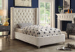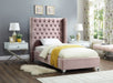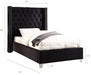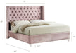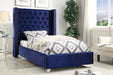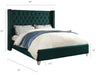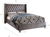 Elegant and eye-catching, the stunning Aiden Bed from Meridian Furniture is the perfect addition to any bedroom. velvet covers the deep tufted design. A beautiful wing bed design is complimented by hand applied nail head details. Strength and beauty is guaranteed with a solid wood frame and stainless steel legs.