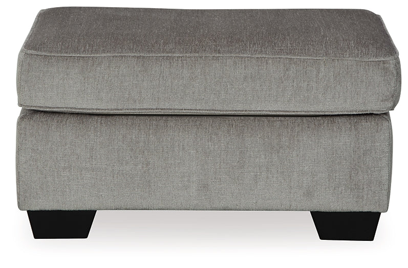 If style is the question, then this ottoman is the answer. Its decidedly contemporary profile is enhanced with plump cushioning and a chenille-feel upholstery that's so pleasing to the touch. Rest assured, this ottoman in slate gray is sure to play well with so many color schemes.