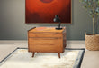 Crafted from high-quality cinnamon-toned wood, this file cabinet exudes warmth and sophistication, instantly elevating the aesthetic of your workspace. The mid-century influence is evident in the clean lines, minimalist hardware, and tapered legs, creating a stylish and functional addition to your office or home.With two spacious drawers, this file cabinet provides ample storage for your important documents and files.