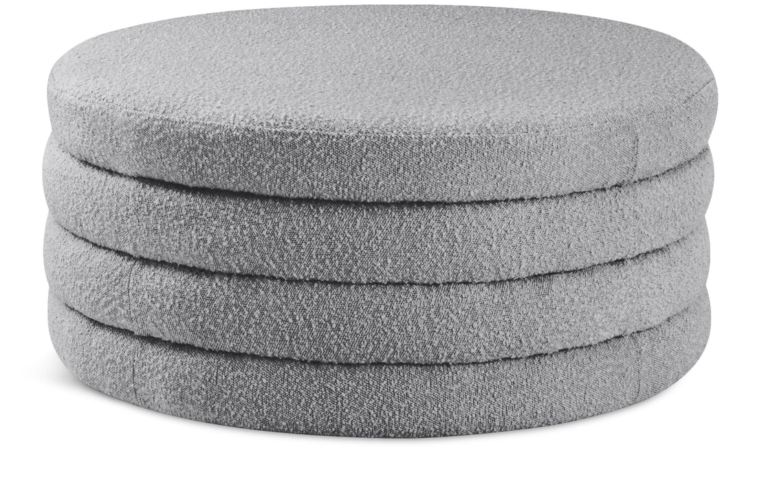 Liven up your living space with this Aphia boucle fabric ottoman/coffee table from Meridian Furniture. Featuring rich boucle fabric upholstery, this ottoman offers softness to the touch and style to the eye. Deep channel tufting gives the appearance of multiple layers stacked together, making it a contemporary piece perfect for any modern home. Pair this ottoman with a matching sofa, or use it as a stool to provide extra seating when you have visitors.