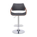 The Armen Living Aspen Adjustable Swivel Bar Stool is an ideal addition to any home. The adjustable seat height functionality allows you to use this stool at your kitchen island, home bar, or peninsula without having to worry about the surface height. The convenient swivel function optimizes everyday use or entertaining, keeping everyone engaged regardless of their place in the room. The plush padded and high-density foam seat and back rest atop a strong pedestal base that creates a sturdy and comfortable seating experience. Wrapped in luxurious faux leather upholstery and complimented by beautiful walnut wood accents, the Aspen stool has a mid-century silhouette exudes timeless beauty that will last for many years to come.