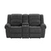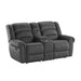 • The Baldwin reclining console loveseat presents rolled arms, nailhead trim, contrast baseball stitching, and weathered faux leather for an enhanced, yet comfortable look.