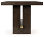 Dressed to thrill, this counter height dining table offers a high-design look at a down-to-earth price. Ultra-sleek lines are accentuated with a dark waxy brown oak-tone finish that’s so easy on the eyes. A thick tabletop and a pedestal base with integrated wine rack showcase quality craftsmanship and attention to detail. Clean-lined and modern, this timeless table has a look that’s made to last.