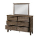 The Cagney Two-Piece Dresser and Mirror Set in Vintage Gray is a perfect blend of durability, timeless charm, and functional elegance, making it an excellent addition to any bedroom. This set includes a 6-drawer dresser and a matching mirror, both meticulously crafted from solid Rubberwood, premium engineered woods, and authentic Acacia wood veneers. The dresser''s robust construction ensures longevity while preserving the natural warmth and beauty of the wood. The multi-step finish in rich tones of brown and gray, hand-rubbed to perfection with a delicate light glaze, accentuates the intricate, aged details, evoking a sense of heritage and refined craftsmanship. The dresser offers abundant storage with its six dovetailed drawers, which glide effortlessly on full-extension, ball-bearing glides, providing smooth and snag-free access to your belongings. The mirror is designed with wide moldings that encase crystal-clear, low-distortion beveled glass, offering impeccable functionality and a flawless reflection that enhances the sophistication of any space. Thoughtful details, such as velvet-lined top drawers and distinctive elongated drawer pulls, add a unique flair that beautifully complements the set’s rustic elegance, making this dresser and mirror set a standout choice for any home.