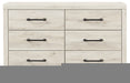 | Details | Made of engineered wood (MDF/particleboard) and decorative laminate, Wispy white finish over replicated oak grain with authentic touch, Large-scale hardware with dark finish, 6 smooth-gliding drawers, Drawer interiors are lined with a faux linen laminate for a clean, finished look, Safety is a top priority, clothing storage units are designed to meet the most current standard for stability, ASTM F 2057 (ASTM International), Drawers extend out to accommodate maximum access to drawer interior while maintaining safety | |