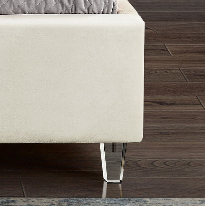 Elegant and eye-catching, the stunning Candace Bed from Meridian Furniture is the perfect addition to any bedroom. velvet covers the deep Channel tufted design. Strength and beauty is guaranteed with a solid wood frame and acrylic legs.