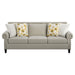 • The Celia sofa livens up any room with the burst of color from the printed poppy pattern storage ottoman and accent pillows that contrasts well with the bronze nailhead trim, elegant rolled arms, and tapered solid wood legs.