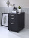 Keep your personal files safe and mobile with this Coleen file cabinet. The perfect size for personal use, including casters make this cabinet easy to move. The bottom larger drawer is the right size for file folders, middle box drawer is perfect for supplies and the top drawer is great for office supplies or other small accessories. The high gloss finish looks good in any environment and is easy to clean.
