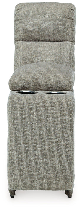 | Details | Includes 5 pieces: left-arm facing power reclining back chaise, console with storage, right-arm facing power recliner and 2 armless power recliners, "Left-arm" and "right-arm" describe the position of the arm when you face the piece, One-touch power control with adjustable positions and zero-draw USB plug-in, Zero-draw technology only consumes power when the USB receptacle is in use, Zero wall design requires minimal space between wall and chair back, Polyester upholstery, Corner-blocked frame with metal reinforced seat, Attached back and seat cushions, High-quality foam cushions wrapped in poly fiber, Console with storage and 2 cup holders, Power cord included; UL Listed | |