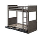 Maximizing the sleeping capacities of your little one's bedroom with the Estevon bunk bed. Whether you've got two children sharing a bedroom or one little one that loves sleepovers, this twin over twin bunk bed is a perfect choice. The gray oak finish is modern and can easily blend in with various color schemes. No need for bunkie boards, the bunk bed includes a 14+14 slat system and a fixed ladder. The bed features three drawers to help your little ones keep organized.