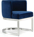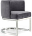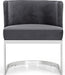 Lend your dining area a touch of retro charm with the Gianna velvet dining chair from Meridian Furniture. The back of the chair has a barrel design that cradles you in comfort while you enjoy a meal with friends, and the chair is thickly padded and upholstered in plush velvet for a luxe feel.