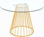 Add a bold touch to your dining area with this chic Gio dining table. Featuring a round, clear tempered glass tabletop and a polished metal base with a wired contemporary design, this dining table transforms your dining space into a stylish haven.