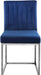 Take dining to a posh new level with this Giselle Dining Chair. A boxy design makes it a nice addition to contemporary spaces, and it's armless design makes it easy to get into and out of with ease. The seat and back are upholstered in rich velvet for a lavish vibe and a pop of sumptuous color to liven up your room, and both are padded well to make sure diners stay comfy while they enjoy their meal. The metal frame is finished in silver for added beauty and aesthetic appeal.