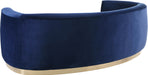 The perfect mix of velvet and stainless steel comes to life in your space with this Julian Sofa. This bold velvet sofa comes upholstered in rich, sumptuous-to-the-touch velvet to make a fashionable statement in your space. The curved back design lends it a modish touch, and the stainless steel trim around its base adds to its glitzy appeal. Stage this sofa alone or with other pieces in the Julian collection.