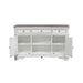 - Center Concave Top Drawer Flanked By 2 Storage Drawers/Doors