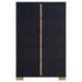 Minimalism never looked so elegant as it does in this elegant five-drawer chest, an excellent option for your updated bedroom ensemble. Modern design details produce a chic vertical chest with an Art Deco vibe and tons of storage space. Made of wood products, this five-drawer chest features a versatile finish with accenting from gold finish metal, placed carefully to emphasize a geometric linear effect. Store incidentals and accessories in drawers operating smoothly on center metal glides. English dovetail drawer construction embellishes this chest's quality, as vertical gold metal drawer hardware offers a unique impact.