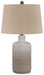| Details | Made of white and taupe glazed ceramic with modified drum shade, 3-way switch, 1 type A bulb (not included); 100 watts max or LED equivalent; UL Listed, Clean with a soft, dry cloth, Assembly required | |
