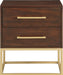 Inject bold, modern styling into your bedroom with this Maxine nightstand. The nightstand's contemporary design is nothing short of stunning, with unassuming lines and eye-grabbing hardware. A rich finish is modish and up-to-the-minute, while the brushed metal legs and drawer handles give this unit added flair. A metal base raises the nightstand from the floor for a noticeably upscale vibe. Fill this nightstand's drawers with essentials for keeping your bedroom space clean and neat.