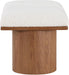 Bring valuable seating and remarkable style to your space with this Pavilion boucle fabric bench, an exquisite balance of style and usability for the entryway, bedroom, and beyond. Crafted from oak veneer with a walnut brown finish, this bench has a 4-inch-thick seat cushion that's channel-tufted for a touch of luxury. The bench's columnar bases add a dash of art deco design, making it a captivating focal point in any room.