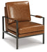 Find the perfect balance of high style and plush comfort with this accent chair. Its ultra-linear metal frame and box seat cushion styling are sure to appeal to contemporary tastes. Weathered faux leather in a light brown tone gives this cool chair a sense of warmth.
