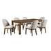 Indulge in the timeless elegance of the Phoenix Dining Set, featuring a 78" dining table and side chairs in a rich finish. Crafted from durable rubberwood solids and birch veneers, this set ensures longevity without compromising style. The multistep finishing process accentuates the natural wood grain, adding depth to your dining space. With seating for 6, the spacious table is perfect for hosting family gatherings or dinner parties. Sink into comfort with the 100% light polyester upholstery and high-density foam cushions of the chairs, offering a cozy retreat after a long day. The table''s block legs and substantial aprons exude sophistication, while the chairs boast an eclectic Art Deco vibe, blending seamlessly with any decor. Upgrade your dining experience with the versatile style and enduring quality of the Phoenix Dining Set.