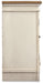 Elevating the art of traditional cottage styling, this TV stand with fireplace option is beautifully in tune with your taste. Antiqued two-tone aesthetic blends a chipped white with a distressed wood tone top for added charm. Cabinet doors’ decorative fretwork over mirrored glass adds a lovely twist. Compatible with W100-121 fireplace insert (sold separately).