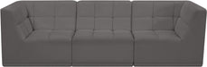 Bolster a contemporary vibe in your living room with this Relax modular sofa. Soft velvet upholstery offers delicate comfort, making this sofa cozy for anyone who sits in it. Biscuit tufting gives this sofa texture and a modern style, adding extra comfort and elegance to your living space. It s modular design allows you to create infinite configurations, making it a versatile piece to add to your home. A latch underneath the sofa makes it easy to attach to other pieces.