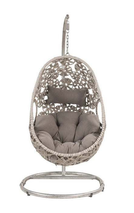 Sigar - Patio Swing Chair - Light Gray Fabric & Wicker