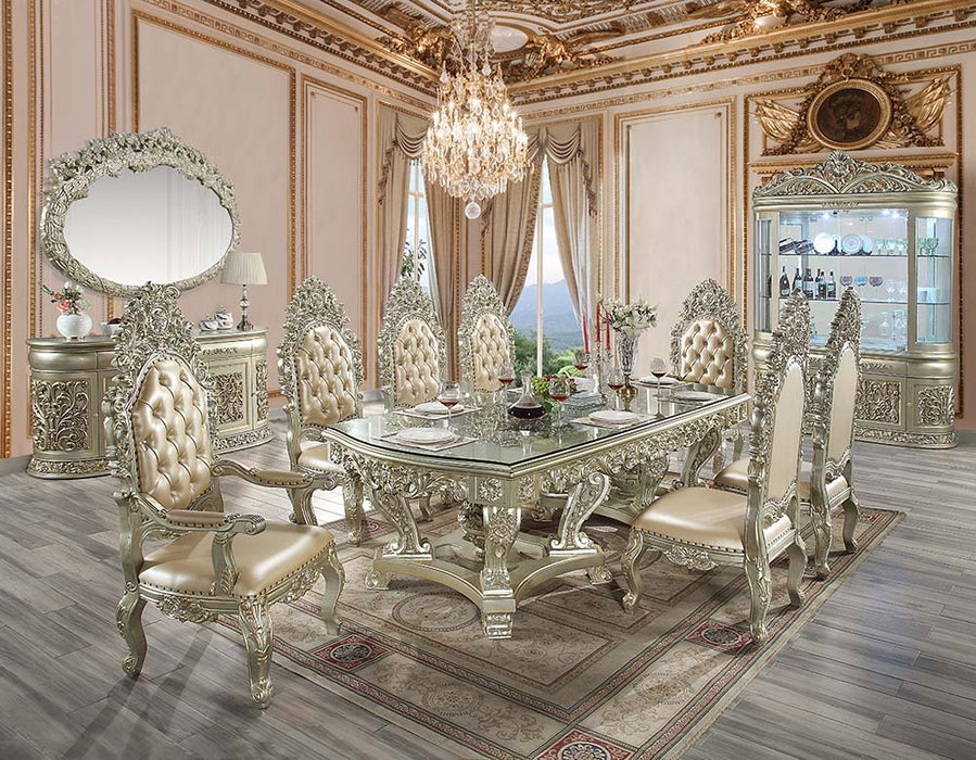 Opulent and magnificent the Sornia dining table will be the focal point of any dining room and is sure to wow guests. The clear glass tabletop allows for the fine details to be enjoyed while dining and will be the topic of conversation throughout the night. The large size is excellent for hosting larger gatherings.