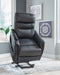 | Details | One-touch (hand control) power button with adjustable positions, Corner-blocked frame with metal reinforced seat, Attached cushions, High-resiliency foam cushions wrapped in poly fiber, Dual motors control the footrest and back independently for custom comfort positioning, Gentle lift-and-tilt motion, Faux leather upholstery, Heat and massage elements feature auto shut-off after 30 minutes, Side pocket storage, Power cord included; UL Listed | |