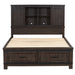 Enhance your home with the Thornwood Hills bookcase bed, dresser, and mirror. Crafted of rubberwood solids with mango veneers, this kit features a rock beaten grey finish with saw cuts, straight line cases with wide pilasters and block feet, metal strip accents, planked tops and side panels, wood framed drawer fronts, full extension drawers with felt lined top drawers, and is accented with dark antique pewter hammered metal bar pull hardware. This unique bookcase bed features a headboard with adjustable shelving for display and storage with wire management access holes in the back panel and a storage footboard complete with two drawers. The dresser features eight drawers of storage, and pairs well with the wood framed mirror that features a beveled edge. Attach the mirror to the dresser with the included bolt-on supports. Add this unique bedroom set to your traditional style home.