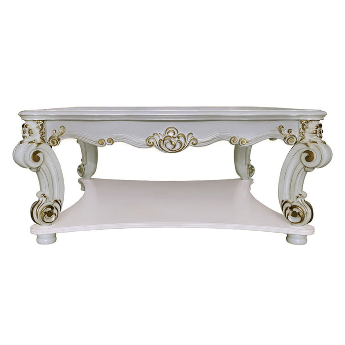 KD, Table with Scrolled Leg and Bottom Shelf Top Apron: Scrolled Decor Trim