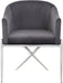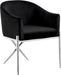 Spread elegance and modernity to your dining room with this Xavier velvet dining chair from Meridian Furniture. This beautiful chair features a simple barrel seat with a plush cushion and back, ensuring that every meal is a comfortable one. The steel legs provide durable support while you sit, and an "X" leg in the back lends the chair an uber-modern vibe. finishing on the base is sleek and chic, giving this chair a contemporary edge that's well at home in any modern dining room. Sleek velvet upholstery is durable and tough yet soft against your body, elevating meal times to a luxurious experience.